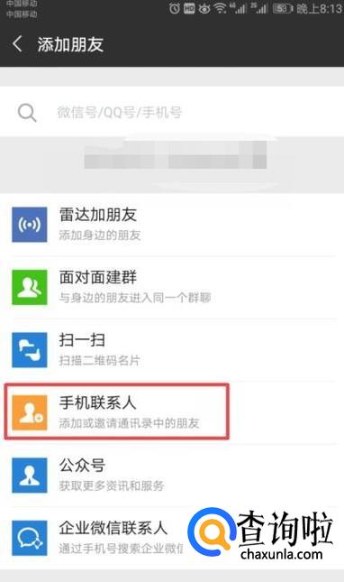 其次,我们还可以点击手机联系人;