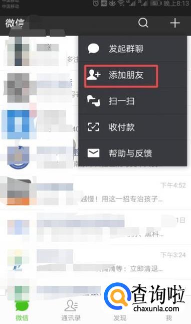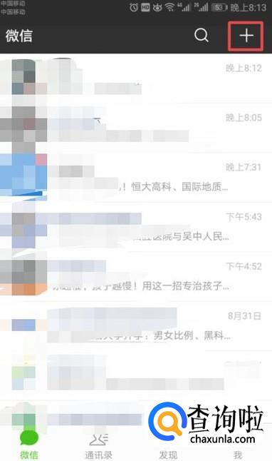 进入微信后,我们点击右上角的那个加按钮;