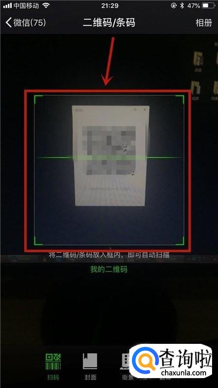 拿出我们的手机扫描一下屏幕中的二维码,如下图所示。