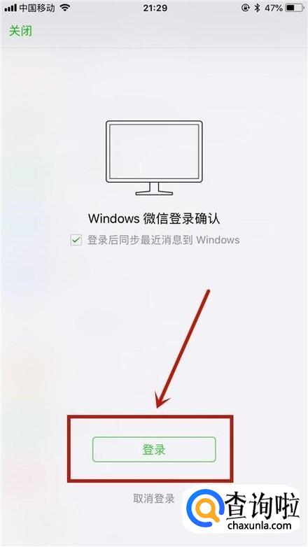 接着在我们的手机微信中点击登录,如下图所示。