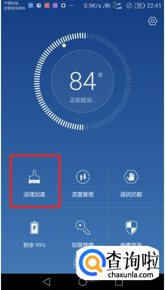 首先把手机管家打开,点【垃圾清理】。