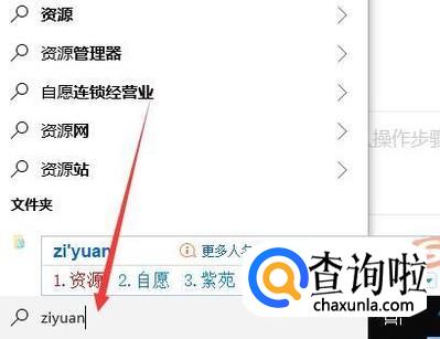 点击开始的位置,然后直接输入资源管理器,这时候就能快速找到这个文件夹了。