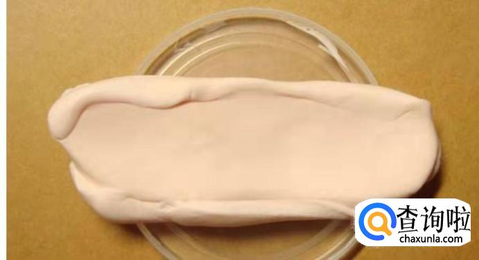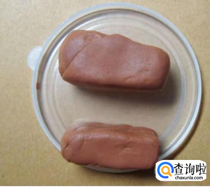 接着,取粉红色的粘土捏成长的长方形出来,作为小桥的主桥面部分,摆放在小盘子上,如下图所示。