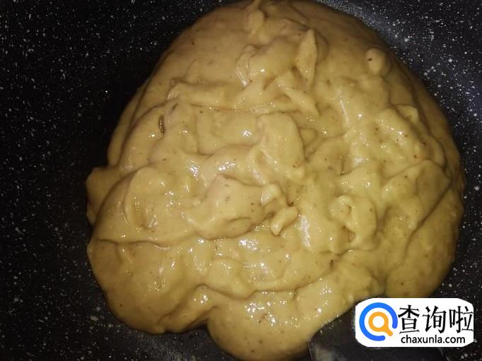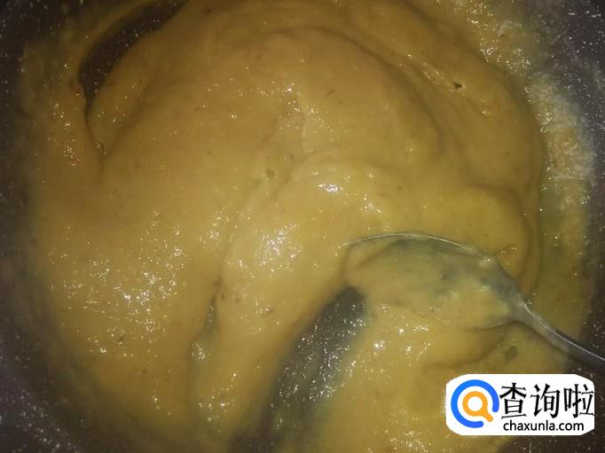 打成果酱后,倒到锅里。
