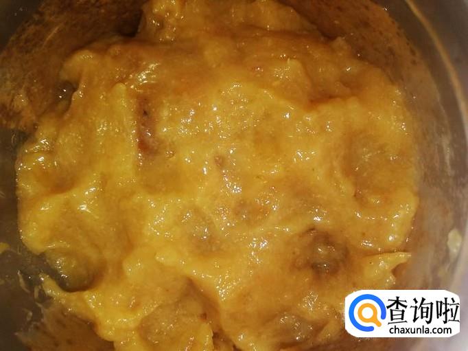 然后把掏干净的果肉放置打浆机打成果酱。