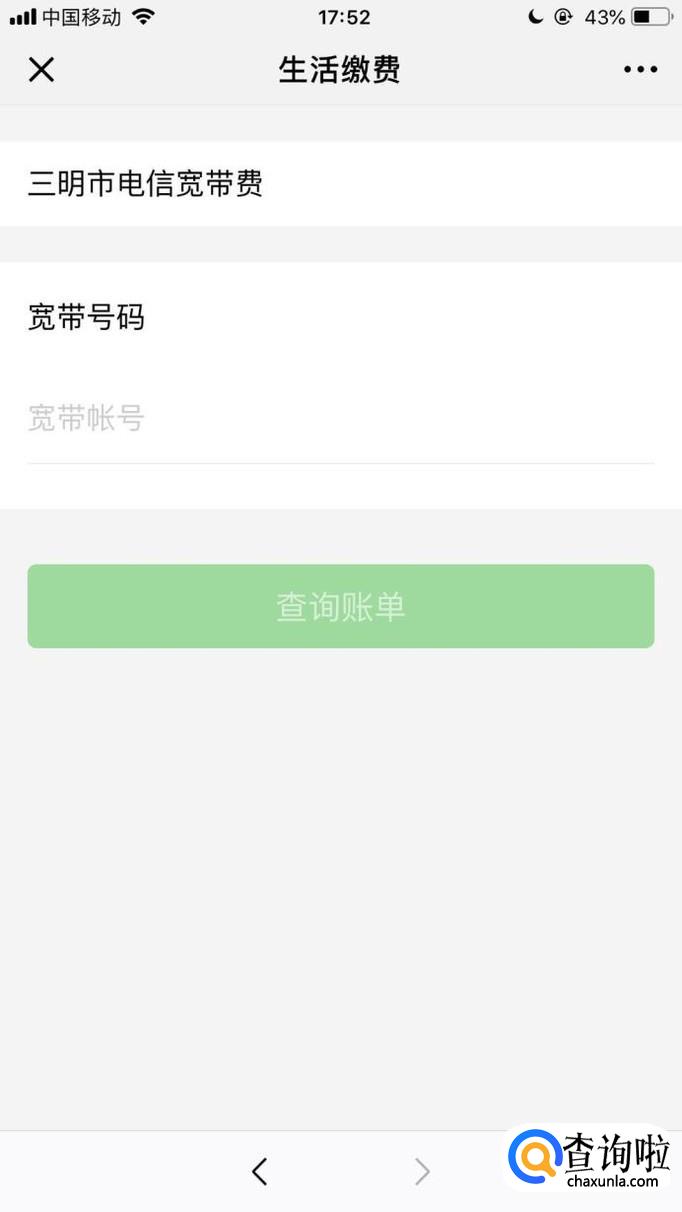 然后输入你的宽带号码并点击查询账单,如下图所示。