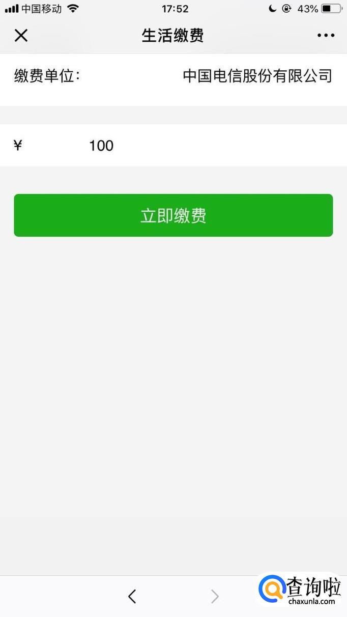 接着输入你要充值的金额并点击立即缴费,如下图所示。