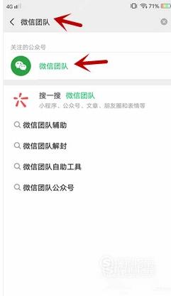 若还可以进入个人首页的话,则可以搜索并关注微信团队