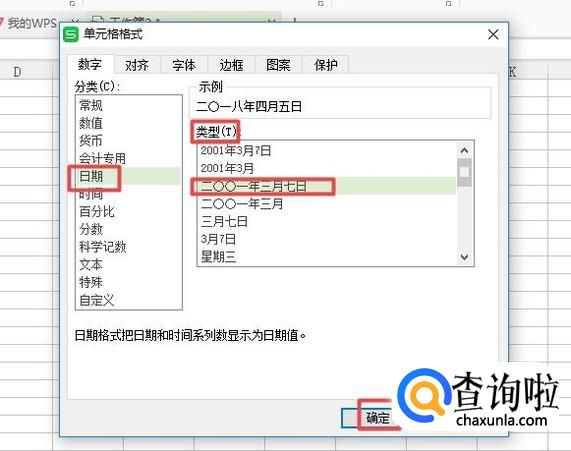 弹出的界面,我们选择日期,然后选择类型中一个我们想要统一的类型,之后我们点击确定;