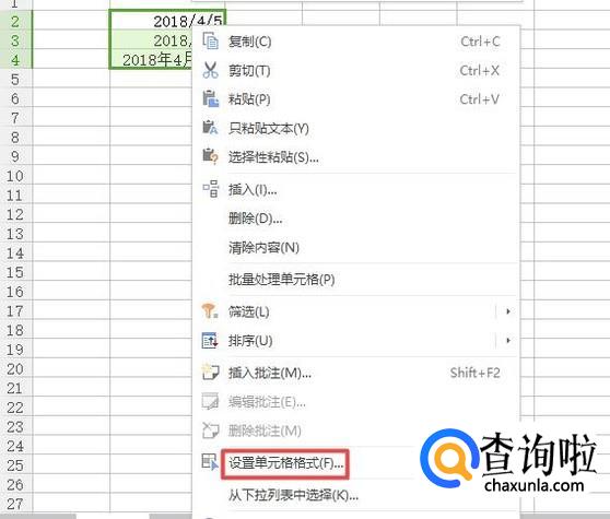 然后我们选中这些单元格,之后我们右击选择设置单元格格式;