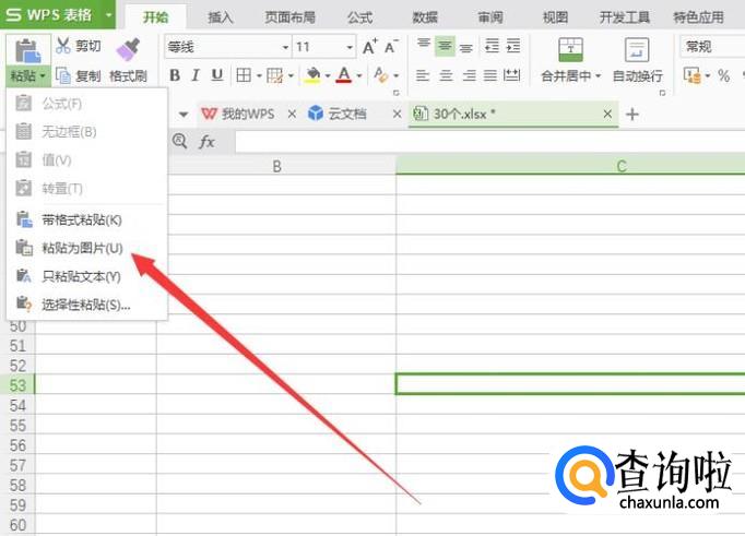 点击左上角的“粘贴”,打开功能菜单,选择“粘贴为图片”即可,如图所示。