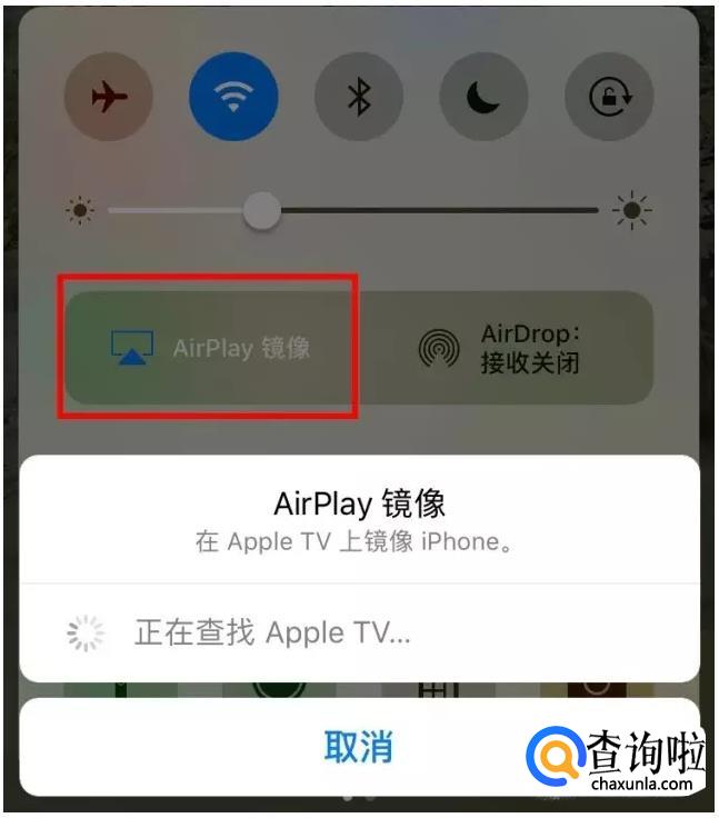 从手机屏幕的底部向上滑动拉出“控制界面”,点击“控制界面”里的“AirPlay镜像”选项。