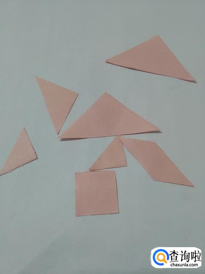 先准备一套七巧板,可以自己用纸做,既省钱,又好玩。七巧板中的三角形有大、中、小三种,下面就分别叫大号、中号和小号加以区别。