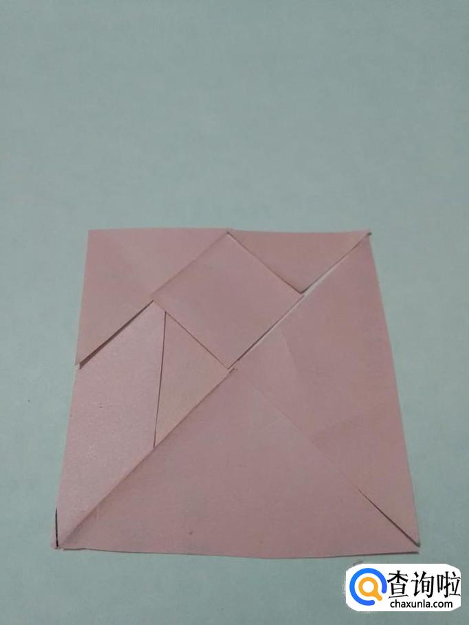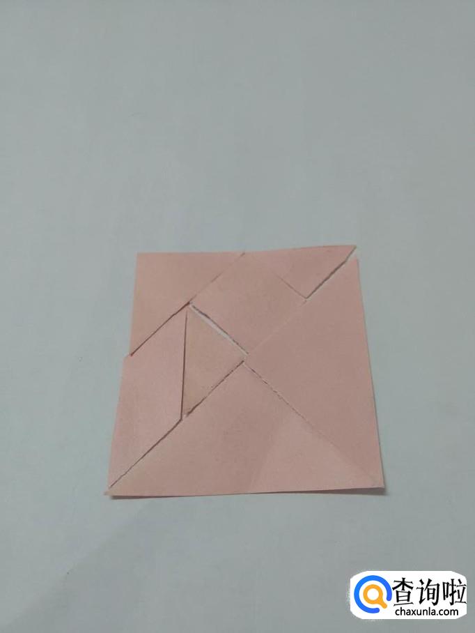 最后,将中号三角形放在所有图形的左上方,正方形就拼完了。