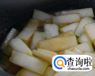 将冬瓜片倒入锅中,用铲子翻炒均匀。