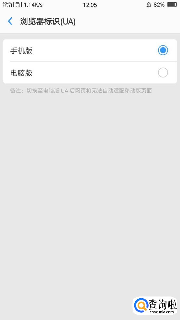 进入设置界面之后,点击第五个选项,就会出现下图二的界面,再点击第二个选项“电脑版”,就切换成功啦!