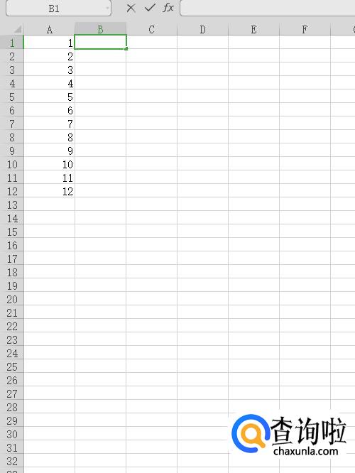 将鼠标放在B1单元格右下角,等待鼠标标志变为一个黑色实心小十字,然后按下鼠标左键,往下拖至B12单元格。
