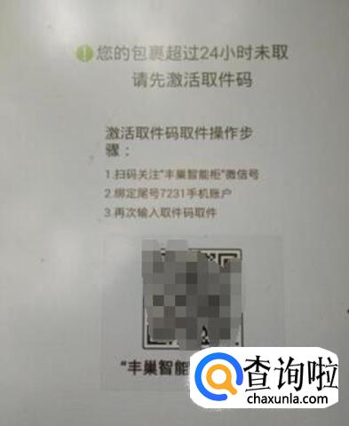 这时候我们输入取件码,点击取件。如果你是24小时内取件,快递箱就会马上打开。如果你已超过24小时,丰巢的系统就会提醒你要关注丰巢公众号激活取货码才行,你就扫描它上面的二维码。