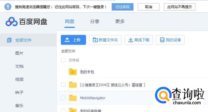注册完成后,用账户名和密码登录,就可以进入网页版的百度网盘了,网盘首页是这样的。