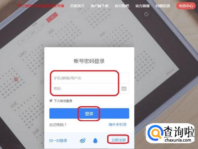 返回搜索结果后,点击搜索到的“百度网盘”官网。就进入了登录界面。有百度账号的就用账号密码登录,没有的话就点击“注册”。