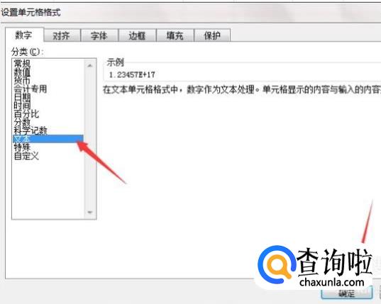 接着会自动到达数字单元格式界面。我们要点击下面的文本点击确定。