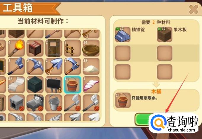 最后使用精铁锭和木板就能合成出来木桶。