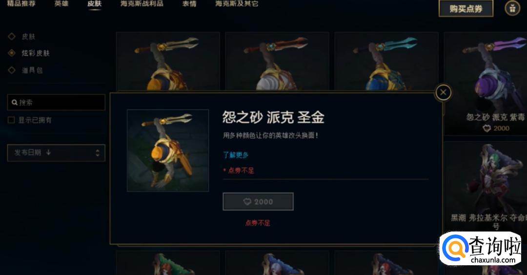 在电脑上登录游戏,在主页面点击“商城”,“皮肤”,“炫彩皮肤”。在此界面挑选你需要购买的炫彩皮肤即可。