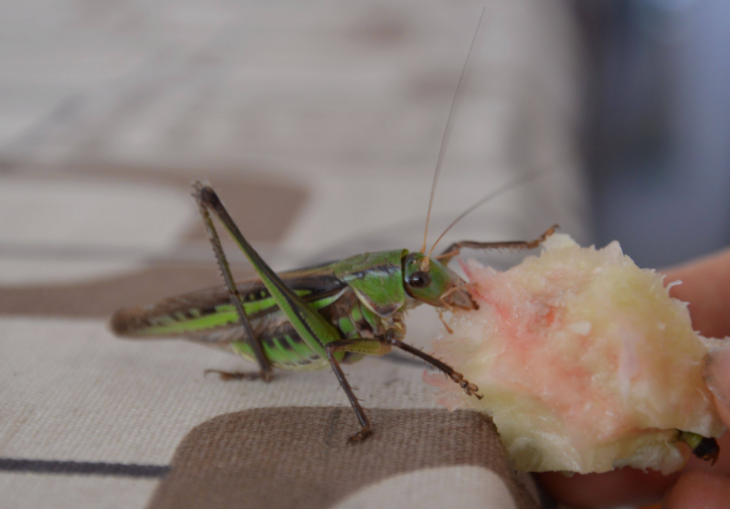 生活在荒野灌木丛里的小蝈蝈,有各种鲜嫩的枝叶和美味的野果充饥解渴,偶尔还有毛毛虫可以开开小荤。随着一次次蜕皮长大,蝈蝈有了越来越健美的身材,它的两对翅膀日益健全,强壮的后腿也越来越适宜跳跃了。灌木丛里食物丰富,小蝈蝈只需伸伸腿,蹦一下,就能饱食终日了。在茂密的树叶和枝条的隐蔽下,蝈蝈几乎可以高枕无忧,只要它的动作不太大,蝙蝠和鸟儿也很难找到它。