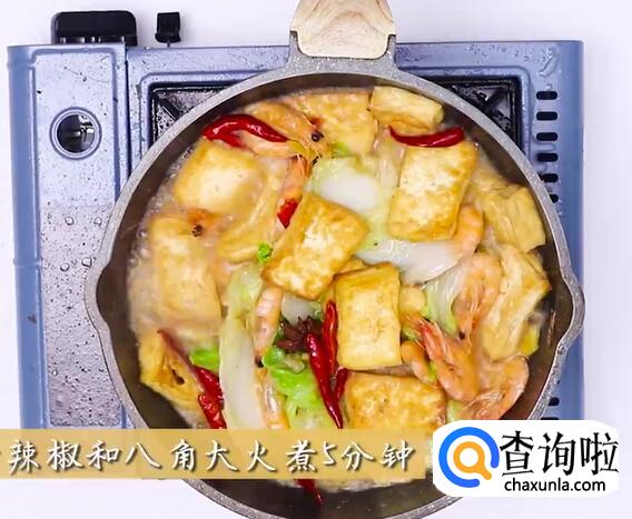 青白菜、虾、豆腐、白糖、生抽、耗油、干辣椒、八角