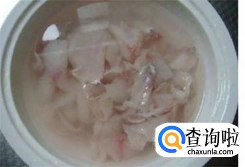 很多人觉得额,鱼片浸泡清水里面,营养成分不会全部丢掉吧?放心吧,大多数营养还在里面的,鱼片一定要很薄,然后浸泡在清水里至少一小时。