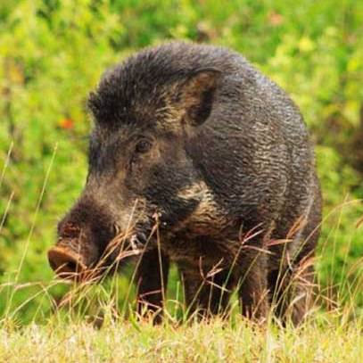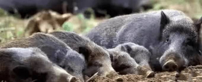 野猪(学名:Susscrofa):是哺乳纲、猪科的偶蹄动物,属于国家二级保护动物。是一种中型哺乳动物。共有14个亚种,体重90-200千克;体长为1.5-2米,尾长21-38厘米,耳长24-26厘米;肩高90厘米左右。不同地区所产的大小也有不同。整体毛色呈深褐色或黑色,顶层由较硬的刚毛组成,底层下面有一层柔软的细毛。