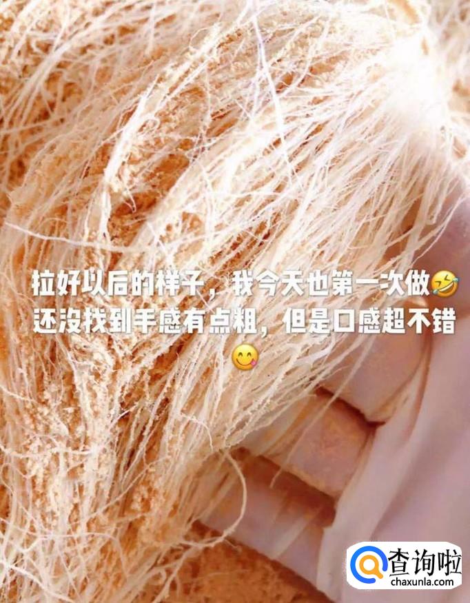 最后把这个棒棒反复拉丝做成头发大小的细丝,沾上豆沙就可以了。一道美味可口的龙须酥就做好了,希望大家能够喜欢。