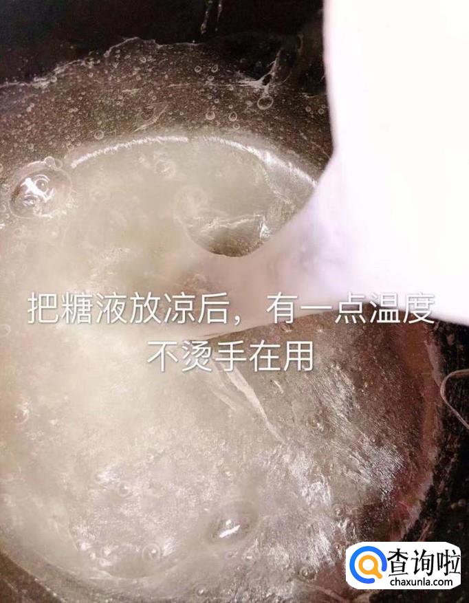 然后把熬好的糖液放凉,大概呈如下图形状。