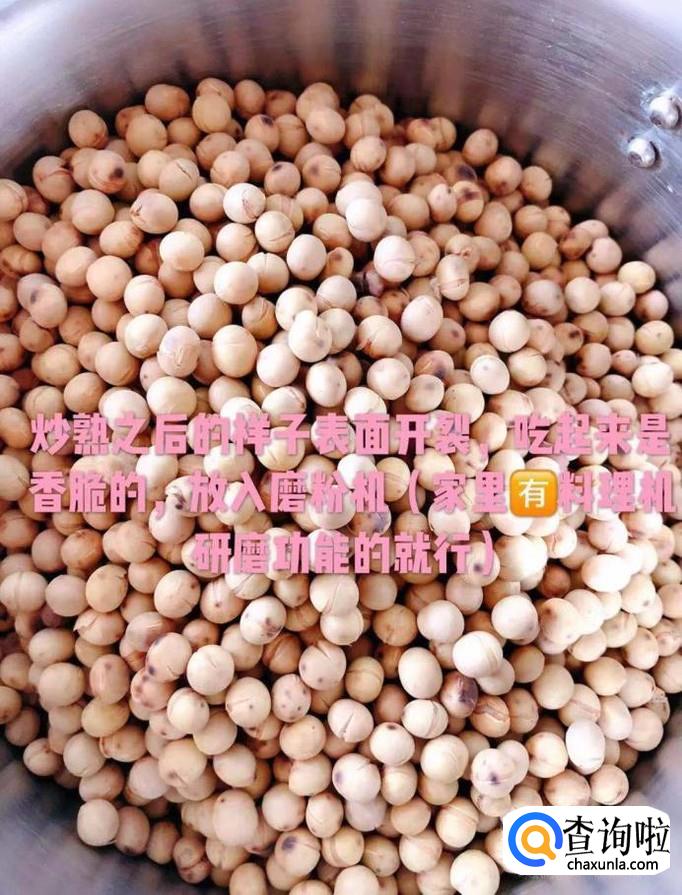 大家可以通过观察黄豆的表面如果是开裂的且咬起来是香脆的,那么说明我们的黄豆就炒好了。