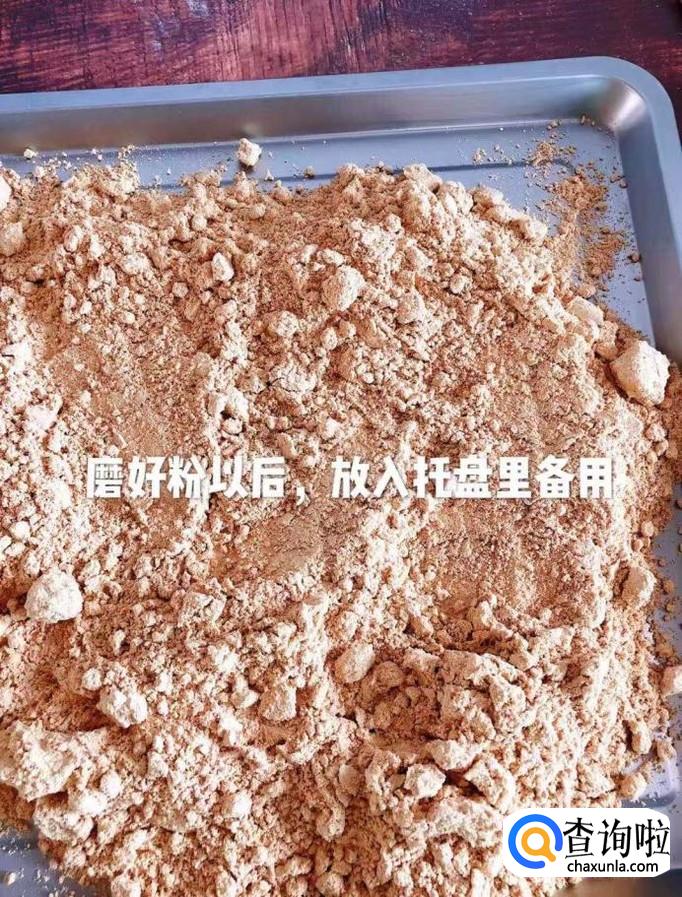 接着把黄豆倒进磨粉机磨成粉末,放入托盘备用,如下图所示。