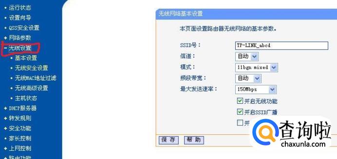 在WEB管理界面左侧点击“无线设置”,打开无线网络设置的子菜单。