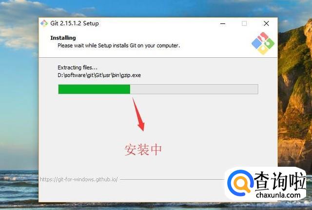 然后Git就会进入安装状态了,如下图所示,我们等到安装进度条完成即可