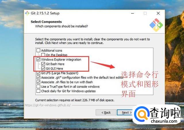 然后会出现选择安装项目的界面,这里按照如下图所示的方式勾选即可,注意红框中的分别代表的是命令行模式和图形界面模式,这两个一定要勾选