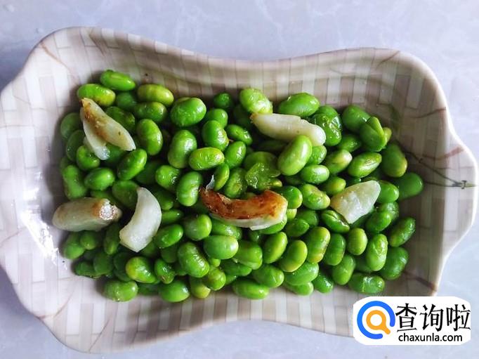 焗到水份干完,打开盖子下几粒味精翻炒20秒左右,熄火。非常清甜脆口的毛豆就做好了。