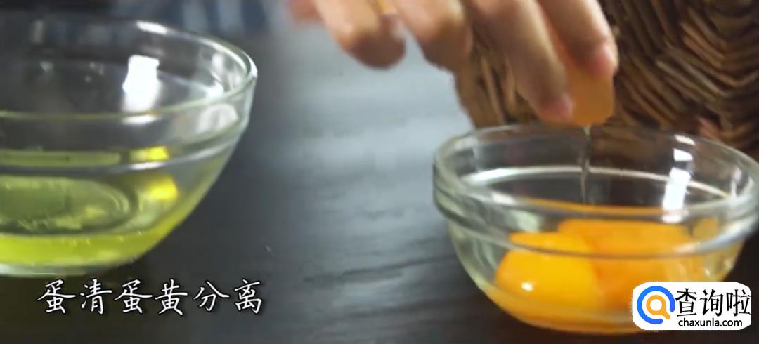 打鸡蛋:将鸡蛋的蛋清和蛋黄分离。