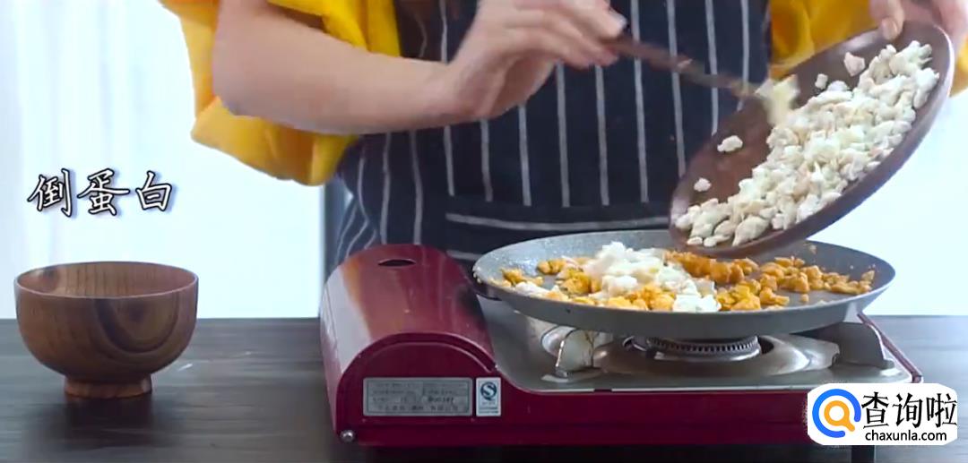 起锅热油,倒入混合好的蛋白液,炒嫩盛出。