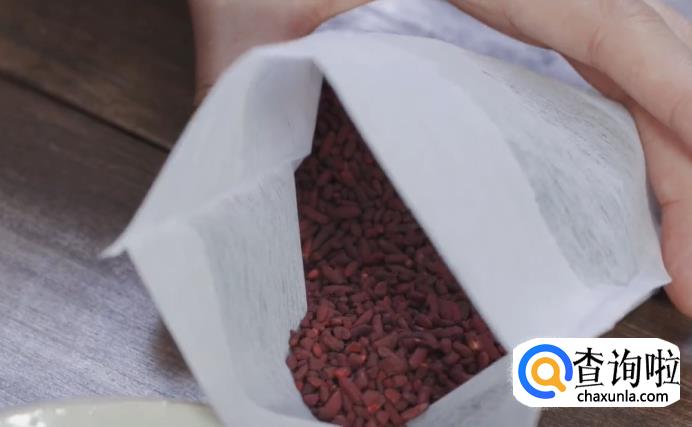 接着,将红曲米放入料包中待用。