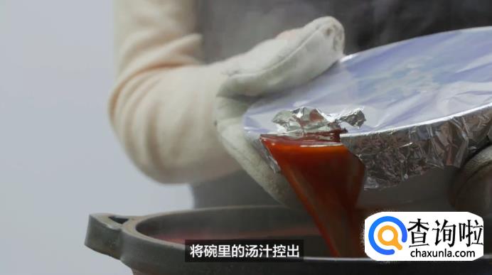 接下来,将五花肉捞出,肉皮朝下放入碗中,淋上汤汁,再盖上锡箔纸移入蒸锅中,开大火蒸半个小时左右即可出锅。