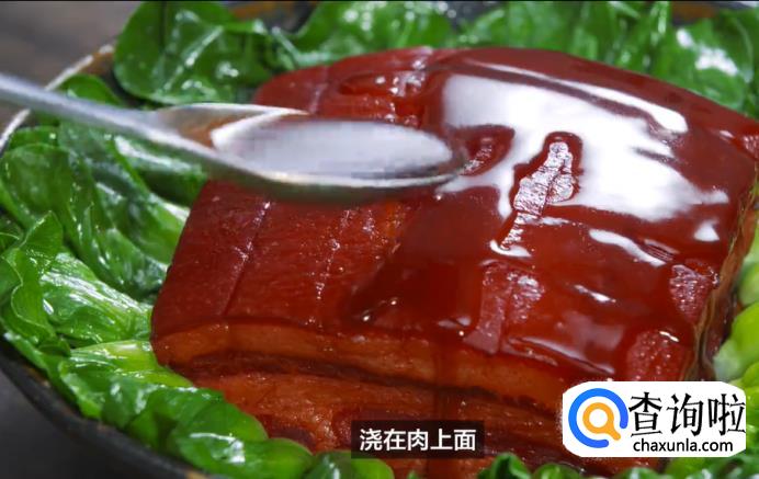 最后,将控住的汤汁收浓,浇在肉上面。这样,咸中带甜,酥烂入味的樱桃肉就做好了。