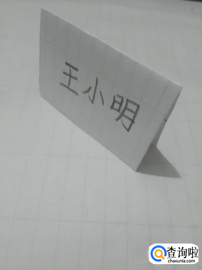 两面都写好后,把纸立在桌上,简易台签就做好了。