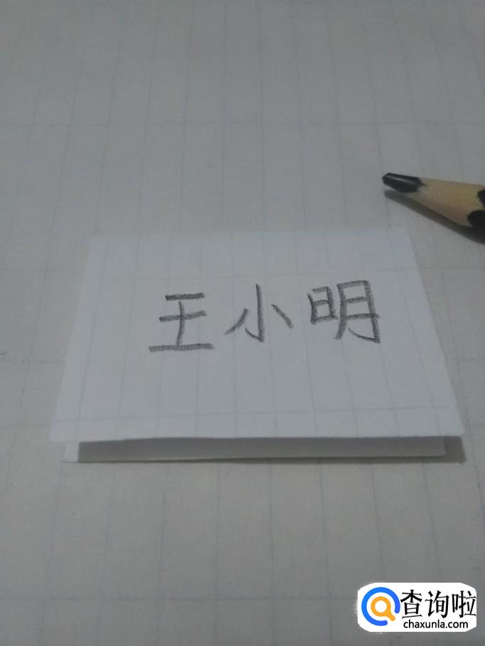 用笔在纸的中间写出一个人的名字,字迹要工整,要容易辨认。