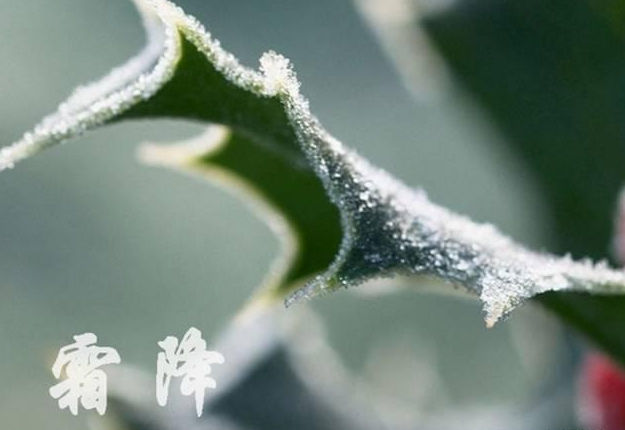 霜降,二十四节气之一,霜降节气含有天气渐冷、初霜出现的意思,是秋季的最后一个节气,也意味着冬天即将开始。我国古代将霜降分为三候:“一候豺乃祭兽;二候草木黄落;三候蜇虫咸俯。”此节气中豺狼将捕获的猎物先陈列后再食用。《月令七十二候集解》:“九月中,气肃而凝,露结为霜矣”。此时,我国黄河流域已出现白霜,千里沃野上,一片银色冰晶熠熠闪光,此时树叶枯黄,在落叶了。
