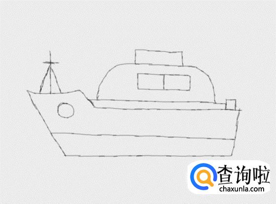 再在轮船上画出驾驶室的细节结构,如图所示: