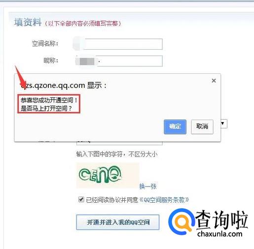 输入完成后点按下方的“开通并进入我的QQ空间”,QQ空间就能成功开启了。