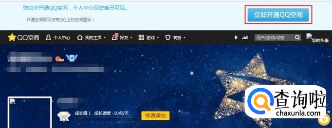 登录后,在页面顶部就会出现“立即开通QQ空间”按钮,点击进入。